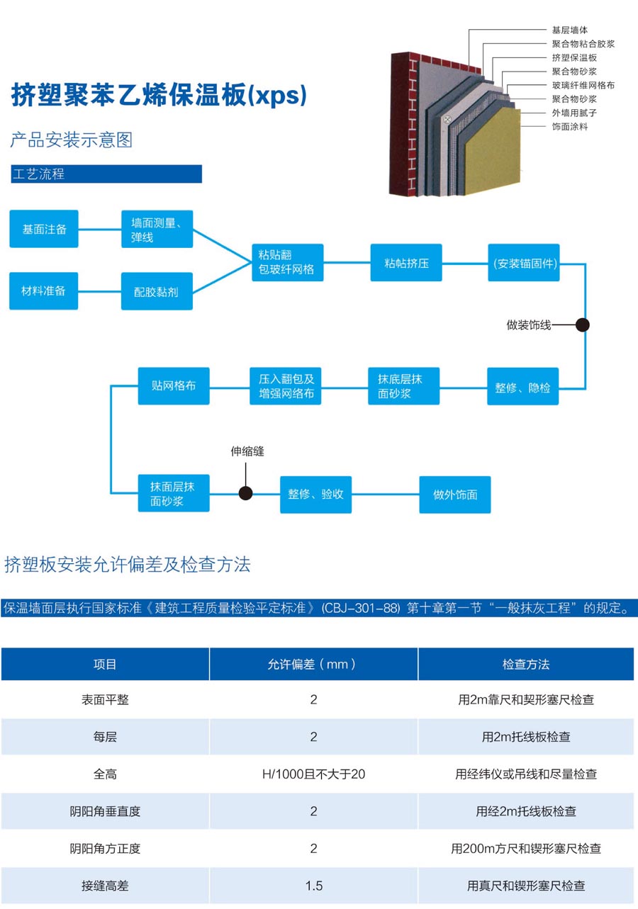 擠塑聚苯乙烯保溫板(XPS)是以聚 苯乙烯樹脂為原料,經由特殊工藝連續 擠出發泡成型的硬質板材。其內部為獨 立 的 密 閉 式 氣 泡 結 構 是 一 種 具 有 高 抗 壓、不吸水、防潮,不透氣、輕質耐腐蝕, 使用壽命長、導熱系數低等優異性能的 環保材料。 擠塑聚苯乙烯保溫板(XPS)廣泛應 用于墻體保溫,平面混凝土屋頂及鋼結 構屋頂的保溫,低溫儲藏、地面、泊車 平臺,機場跑道、高速公路等領域的防 潮保溫、控制地面膨脹是目前建筑業界 **物美價廉的隔熱、防潮材料。